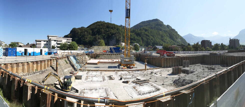Während der Bauphase begleitete GEOTEST die Tiefbauarbeiten und übernahm die Grundwasserüberwachung. Eine der grössten Herausforderungen dabei war die Grundwasserabsenkung. Grund dafür waren die komplexen und auf dem gesamten Areal stark unterschiedlichen Untergrundverhältnisse.
