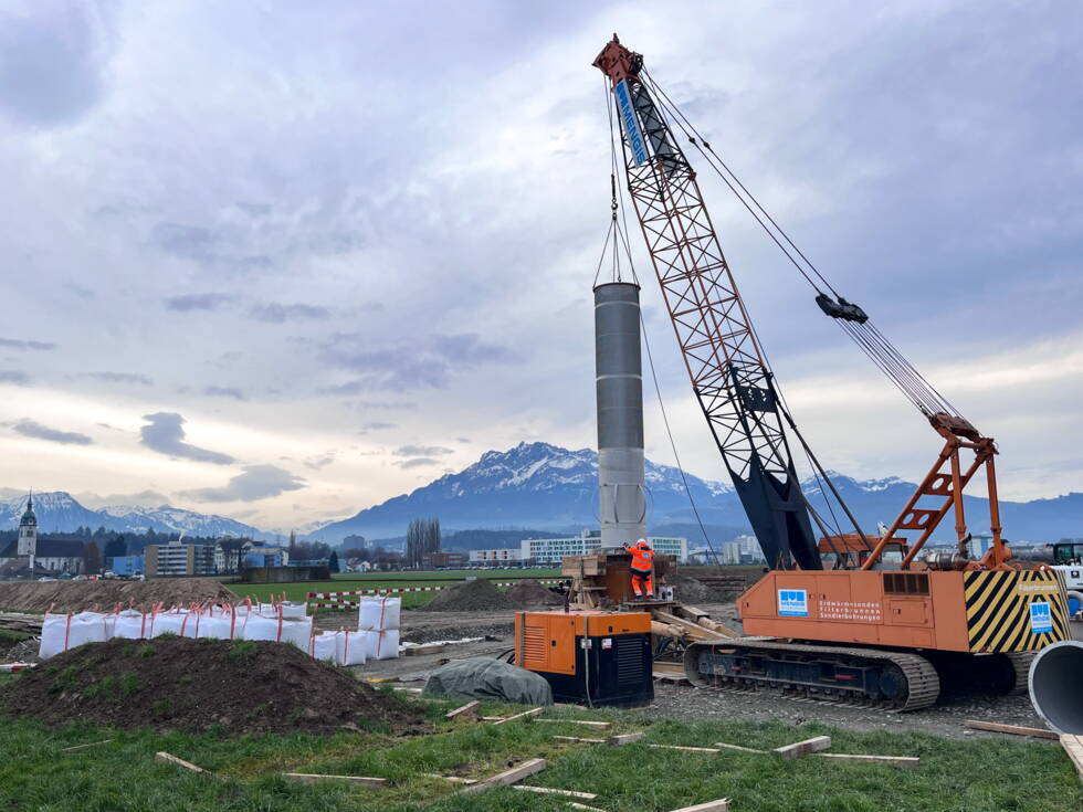 The future Kirchfeld groundwater pumping station, with its two new large-scale filter wells, will replace the existing Stichermatt GWPW. The latter is currently situated in the middle of a residential area and no longer complies with the applicable water protection regulations of Canton Lucerne. The Stichermatt pumping station will be decommissioned by order of the Canton as soon as the new Kirchfeld GWPW is ready for operation.