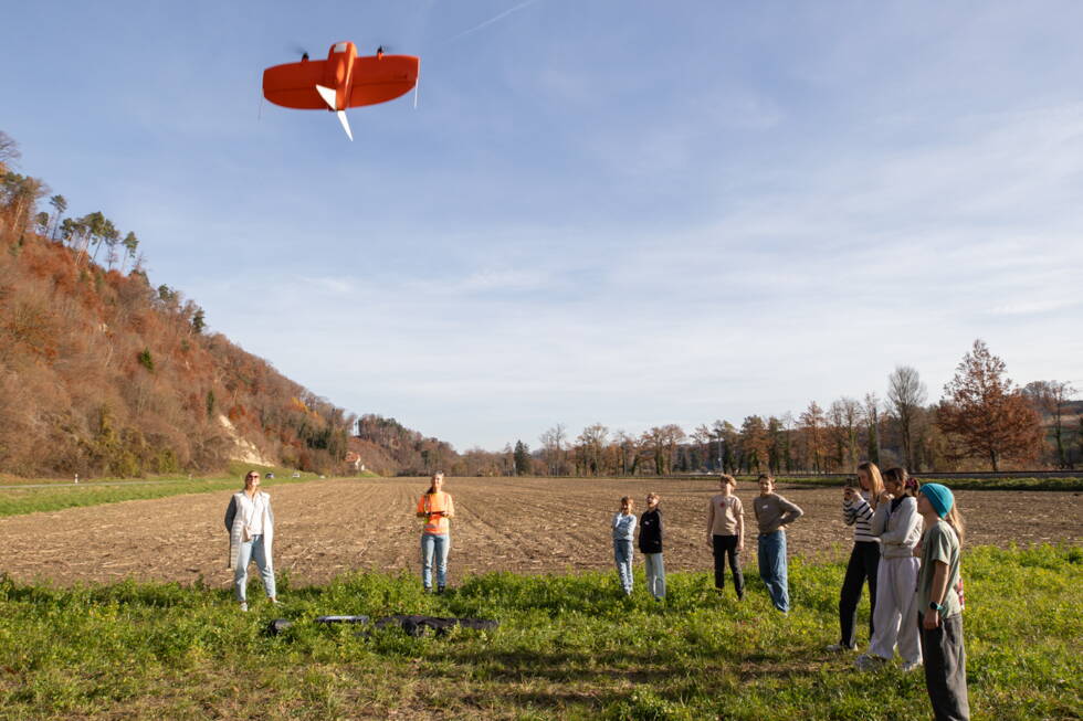 Pour clore la journée, un moment fort était au programme : le vol de drones. Une collaboratrice de GEOTEST a montré comment le drone de mesure, d’environ un mètre de long, décolle automatiquement, suit son itinéraire prédéfini, prend des photos et atterrit à nouveau.