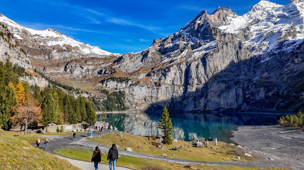 La randonnée depuis la station supérieure jusqu'au lac d'Oeschinen, puis jusqu'à Kandersteg, a permis de découvrir les nombreux dangers présents dans la région. Les collaborateurs du projet GEOTEST consacré à la gestion des risques sur le «Spitze Stei» ont expliqué sur place de manière claire comment ils observent et évaluent les processus.
