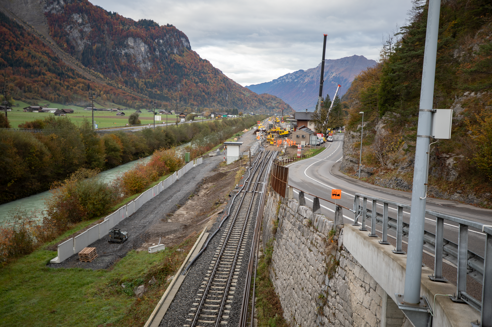 Les lots 1 et 3 ont déjà été réalisés. Le projet s’est ensuite concentré sur la réfection totale du lot 2, le tronçon le plus exigeant d’un point de vue logistique. Le tracé a été entièrement assaini sur environ 2 600 mètres afin de protéger durablement la ligne ferroviaire contre les crues– un enjeu majeur, car le remblai ferroviaire existant est régulièrement inondé par de fortes pluies et les crues de la Hasliaare.