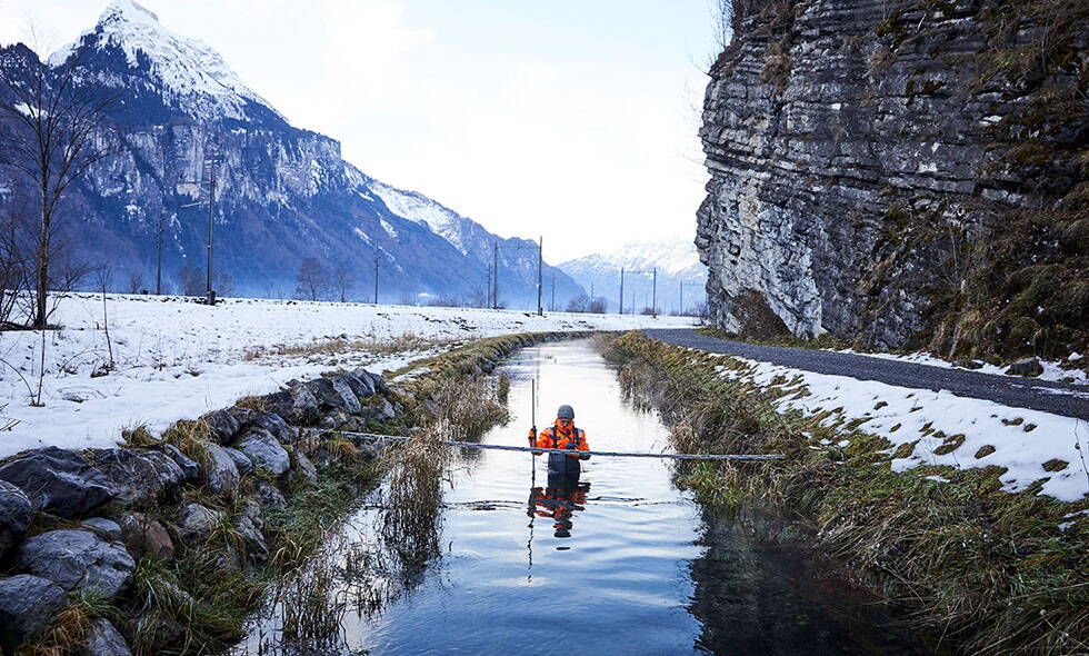 Les questions relatives à la gestion respectueuse des eaux souterraines se posent désormais également pour presque tous les projets de construction. Dans le cadre d’investigations du sous-sol, nous étudions de façon ciblée les conditions hydrogéologiques locales, concevons et calculons l’étendue de mesures de surveillance des eaux souterraines et d’évacuation de l’eau, planifions des mesures de remplacement pour la préservation de l’écoulement naturel des eaux souterraines dans le cas de constructions dans une zone saturée en eau souterraine et développons des concepts de gestion des eaux de pluie provenant des toits et s’accumulant sur le terrain.